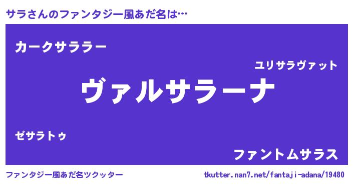 | 男性向けラノベタイトル風あだ名 | 『この素晴らしい世界にサラを!』 |