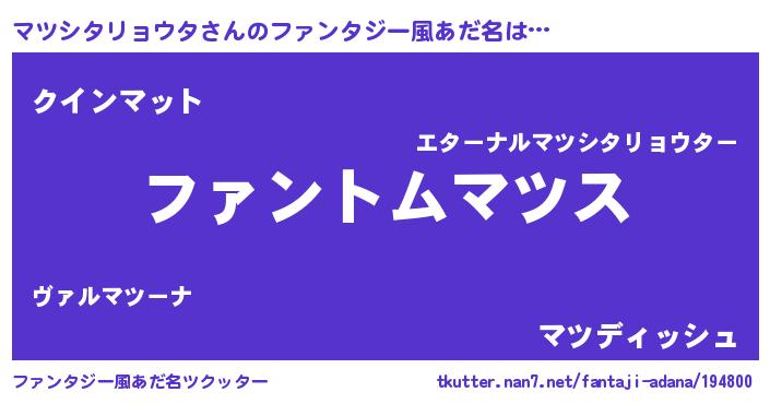 | 男性向けラノベタイトル風あだ名 | 『マツシタリョウタの嫁は女の子じゃないと思った?』 |