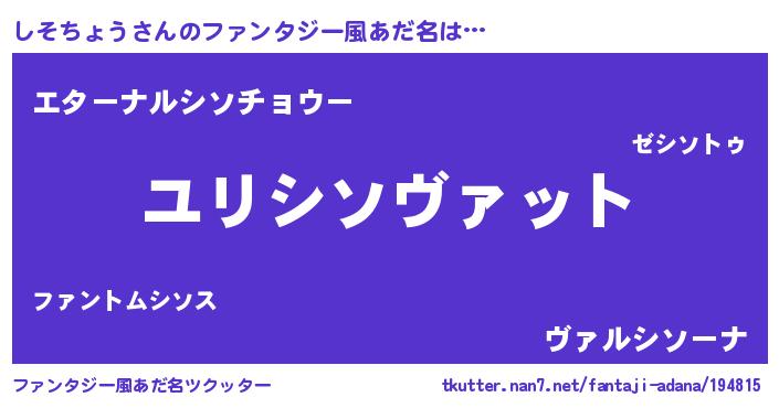 | 男性向けラノベタイトル風あだ名 | 『シソチョウスレイヤー』 |