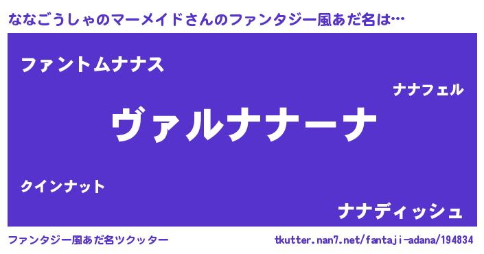 | 男性向けラノベタイトル風あだ名 | 『この素晴らしい世界にななごうしゃのマーメイドを!』 |