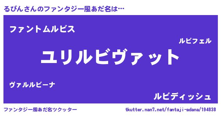 | 男性向けラノベタイトル風あだ名 | 『転生したらるびんだった件』 |