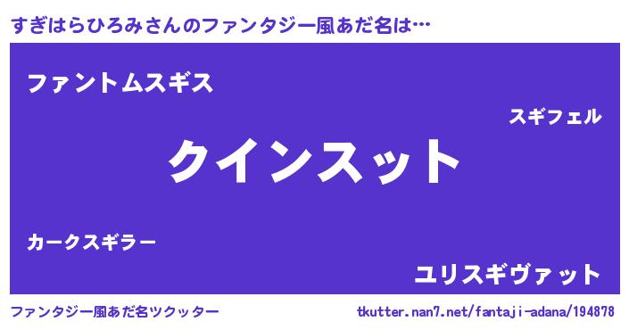 | 男性向けラノベタイトル風あだ名 | 『おまえをオタクにしてやるから、俺をすぎはらひろみにしてくれ! 』 |