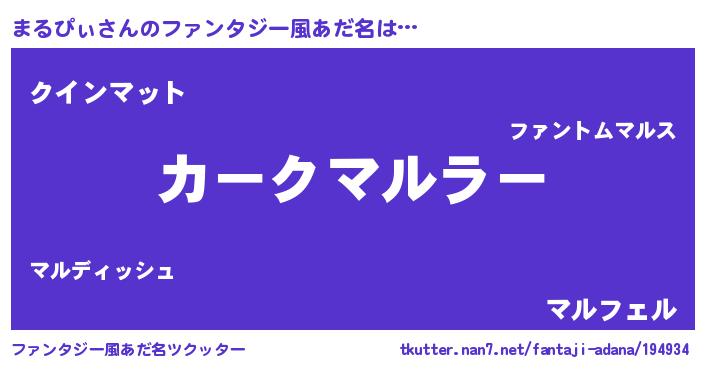 | 欧米人風あだ名 | 『まるぴぃ・ステッグマイヤー』 |