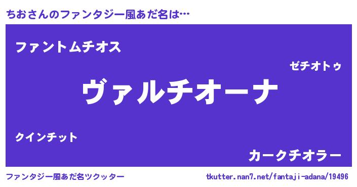 | 女子向けラノベタイトル風あだ名 | 『乙女ゲームの破滅フラグしかない悪役ちおに転生してしまった…』 |