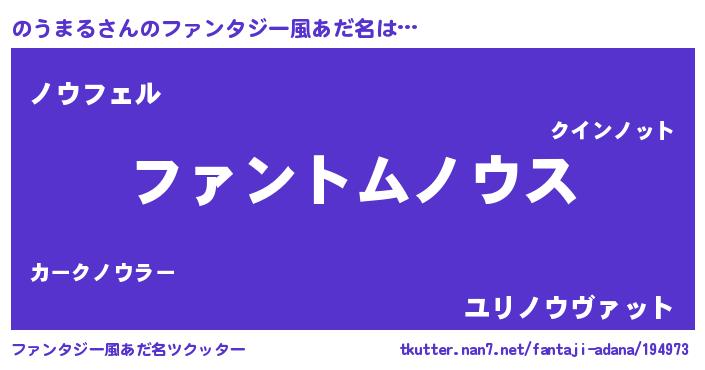 | 意味不明あだ名 | 『とにかく怪しいのうまる』 |