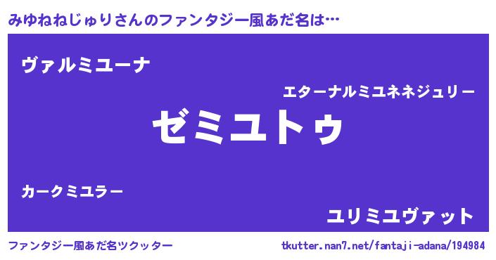 | 男性向けラノベタイトル風あだ名 | 『Re:みゆねねじゅりから始める異世界生活』 |