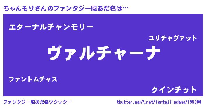 | 男性向けラノベタイトル風あだ名 | 『この素晴らしい世界にちゃんもりを!』 |