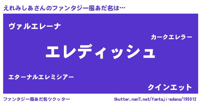 | 可愛いあだ名 | 『えれみしあママ』『ぽよえれ』 |