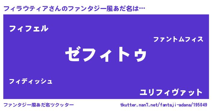| 意味不明あだ名 | 『自称フィラウティア』 |
