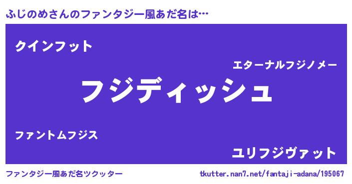 | 女子向けラノベタイトル風あだ名 | 『ふじのめの契約王妃』『ふじのめ恋絵巻』 |
