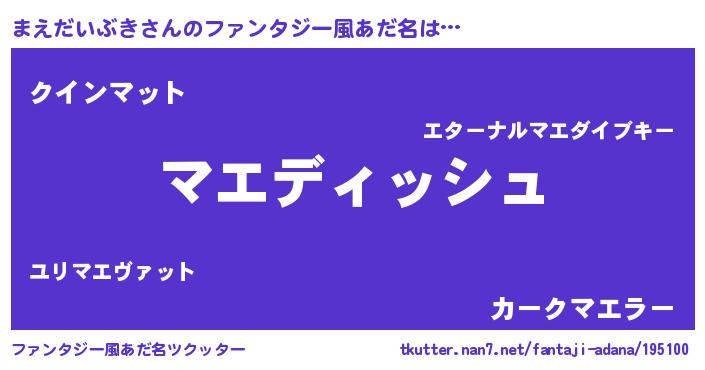 | 意味不明あだ名 | 『永久保存まえだいぶき』 |