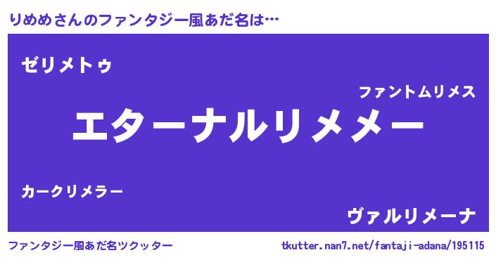 | 可愛いあだ名 | 『りめちー』『りめうちぇる』 |
