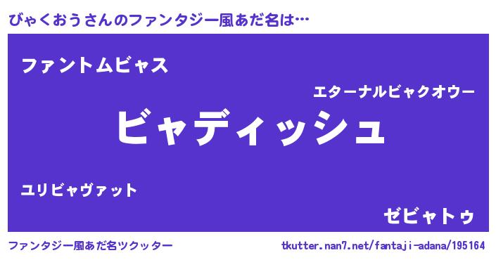 | ヒーロー風カッコイイあだ名 | 『ネオビャクオウ』『暗黒騎士ビャ』 |