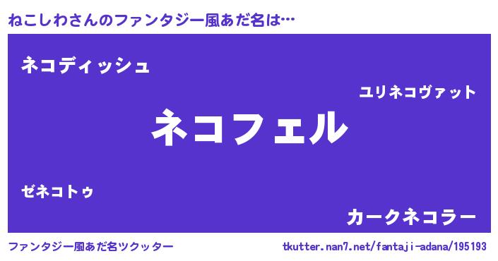 | 男性向けラノベタイトル風あだ名 | 『ネコシワアートオンライン』 |