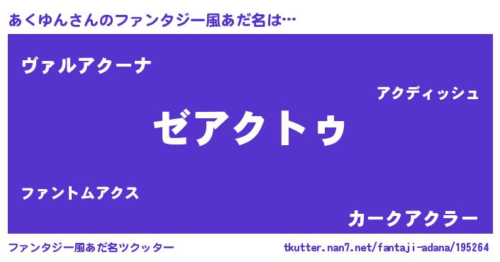 | 男性向けラノベタイトル風あだ名 | 『Re:あくゆんから始める異世界生活』 |