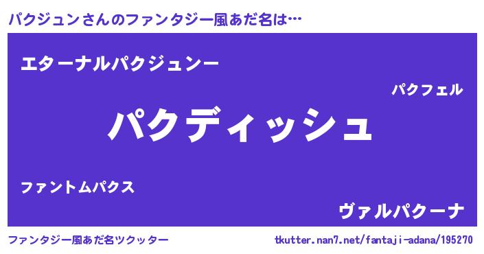 | ヒーロー風カッコイイあだ名 | 『ネオパクジュン』『仮面パクダー』 |