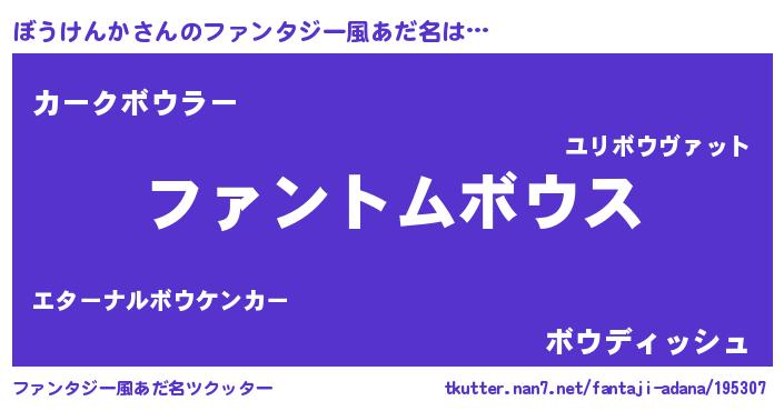 | ポケモン風あだ名 | 『ボウゴンZ』『ヒボウケンカ』 |