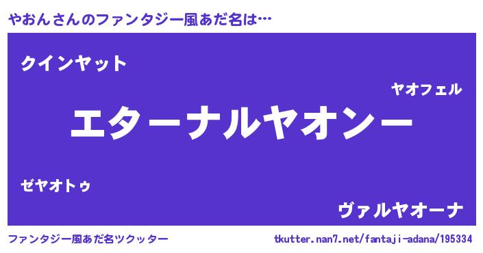 | 女子向けラノベタイトル風あだ名 | 『やおんの雑貨屋さん』『闇のやおん』 |