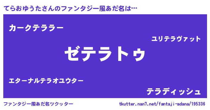 | 男性向けラノベタイトル風あだ名 | 『魔法科高校のてらおゆうた』 |