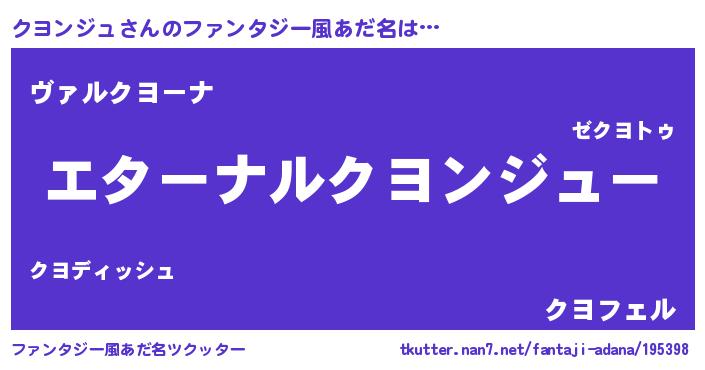 | 女子向けラノベタイトル風あだ名 | 『クヨンジュの雑貨屋さん』 |