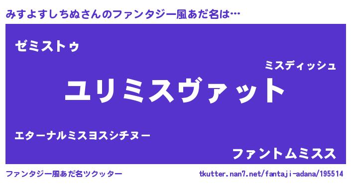 | 女子向けラノベタイトル風あだ名 | 『みすよすしちぬの玉の輿計画!』 |