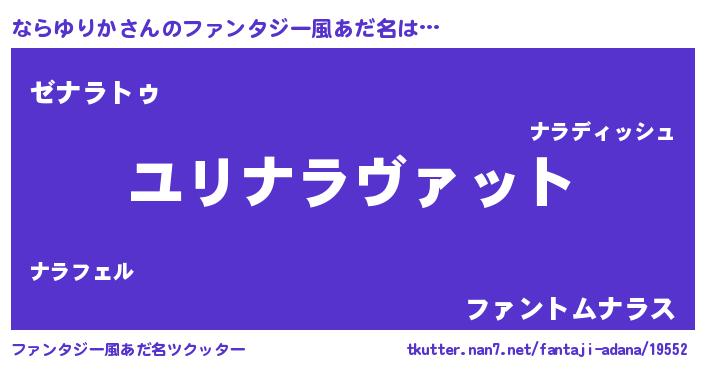| 男性向けラノベタイトル風あだ名 | 『ナラユリカスレイヤー』 |