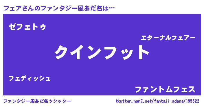 | ヒーロー風カッコイイあだ名 | 『正義の使者フェア』『炎刃騎士フェ』 |