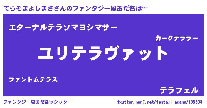 | 男性向けラノベタイトル風あだ名 | 『てらそまよしまさ~年齢イコール彼女いない歴の魔法使い~』 |