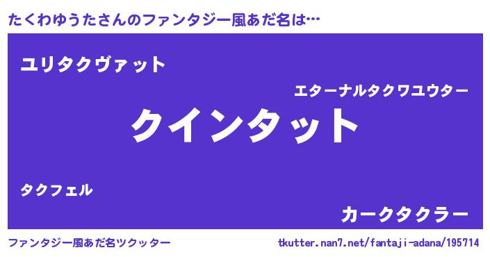 | 男性向けラノベタイトル風あだ名 | 『おまえをオタクにしてやるから、俺をたくわゆうたにしてくれ! 』 |