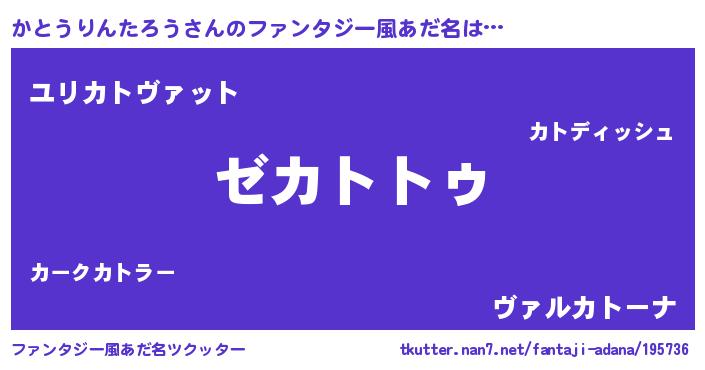 | 男性向けラノベタイトル風あだ名 | 『Re:かとうりんたろうから始める異世界生活』 |