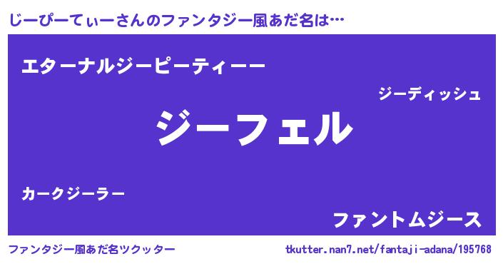 | 胡散臭い通販商品みたいなあだ名 | 『億万長者になれる水晶球…その名も「じーぴーてぃー」』 |