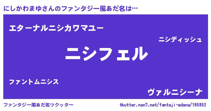 | 男性向けラノベタイトル風あだ名 | 『にしかわまゆの憂鬱』 |