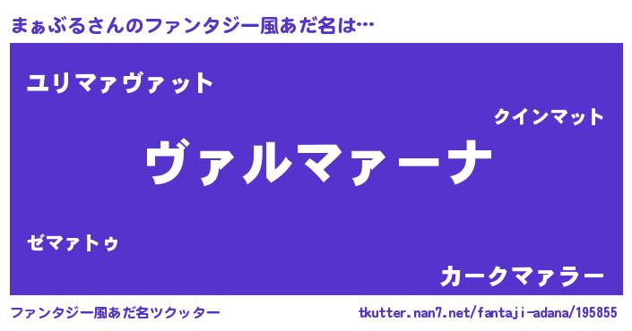 | 男性向けラノベタイトル風あだ名 | 『この素晴らしい世界にまぁぶるを!』 |
