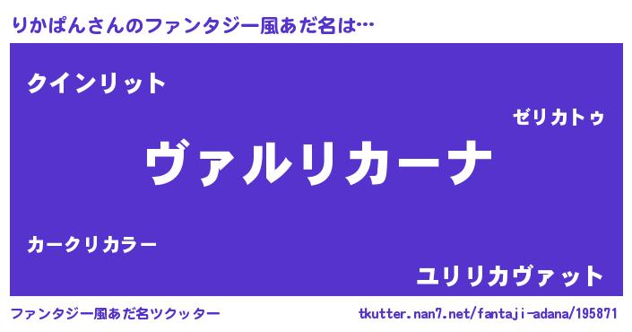 | 女子向けラノベタイトル風あだ名 | 『悪役りかぱんに転生したようですが、知った事ではありません』 |