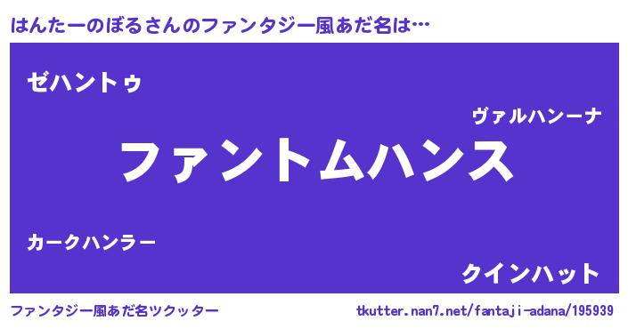 | 男性向けラノベタイトル風あだ名 | 『はんたーのぼるの嫁は女の子じゃないと思った?』 |