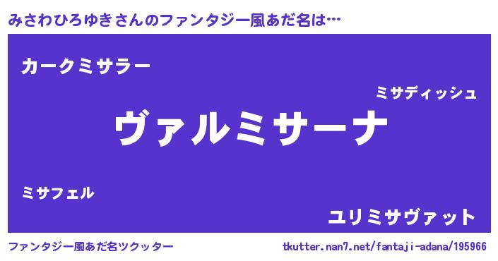 | ヘコむあだ名 | 『みさわひろゆき(笑)』『みさっふぃ~』 |