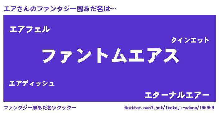 | ポケモン風あだ名 | 『エアゴンZ』『ヒエア』『エアチュウ』 |