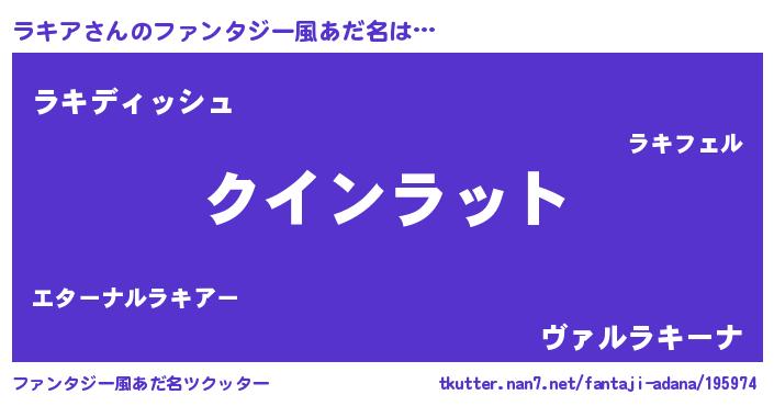 | ヘコむあだ名 | 『ラキア(小並感)』『ラキもー』 |