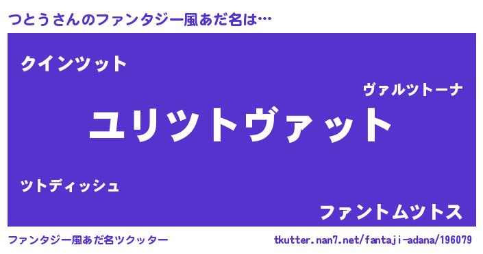 | 男性向けラノベタイトル風あだ名 | 『ツトウスレイヤー』 |