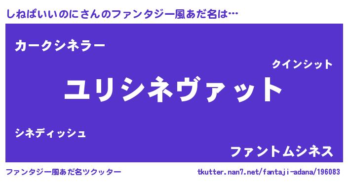 | 男性向けラノベタイトル風あだ名 | 『シネバイイノニスレイヤー』 |