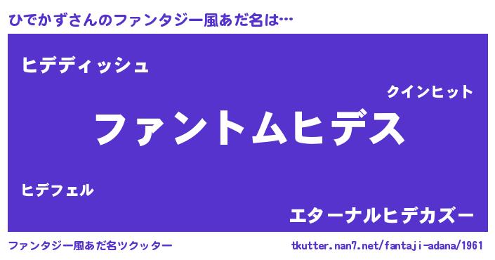 | ヒーロー風カッコイイあだ名 | 『暗黒騎士ヒデ』『ネオヒデカズ』 |