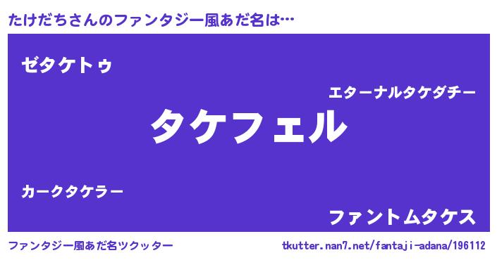 | 意味不明あだ名 | 『ペロリンたけだち』『自称たけだち』 |