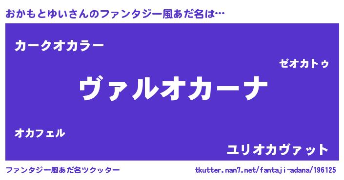 | 男性向けラノベタイトル風あだ名 | 『魔弾の王とおかもとゆい』 |