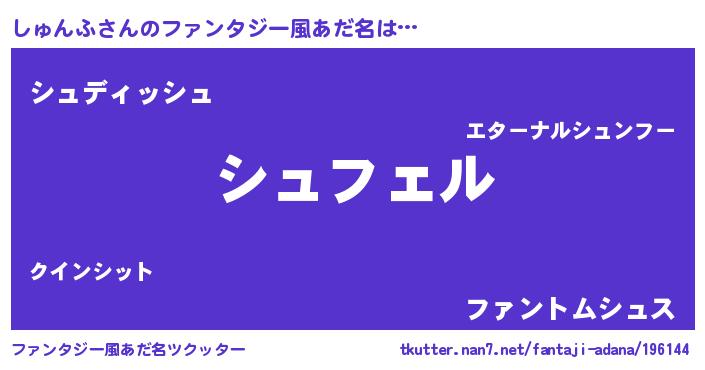 | 男性向けラノベタイトル風あだ名 | 『シュンフアートオンライン』 |