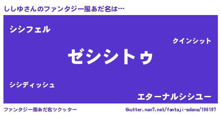 | 男性向けラノベタイトル風あだ名 | 『Re:ししゆから始める異世界生活』 |