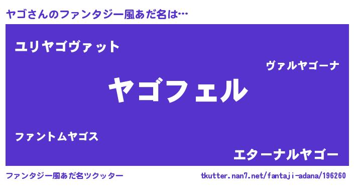 | ヘコむあだ名 | 『ヤゴふぇ~』『レバニラ』 |