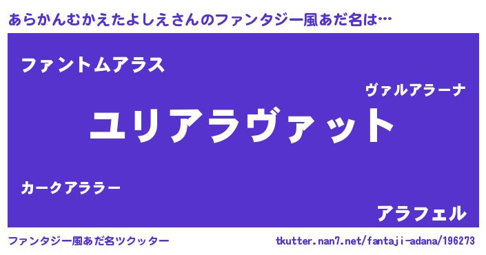 | 胡散臭い通販商品みたいなあだ名 | 『信頼と実績のサプリメント…その名も「あらかんむかえたよしえ」』 |
