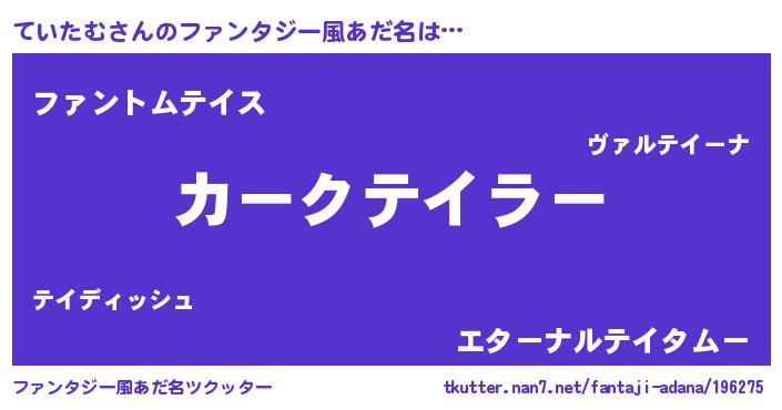 | 男性向けラノベタイトル風あだ名 | 『ていたむに滅ぼされるだけの簡単なお仕事です』 |