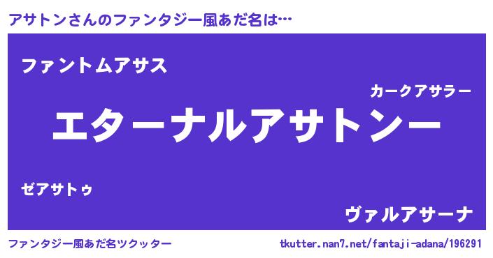 | 意味不明あだ名 | 『アサトンフォーエバー』『自称アサトン』 |