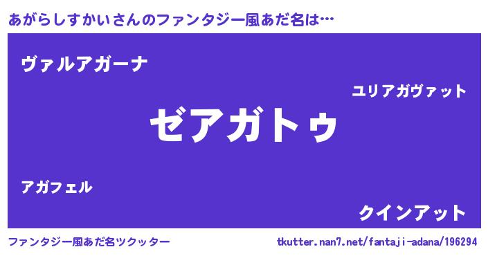 | 意味不明あだ名 | 『自称あがらしすかい』 |